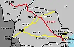 Le route est dupliquée dans certaines parties, comme dans les tronçons entre Garuva, Curitiba et Ponta Grossa, et entre Maringá et Paranavaí. La BR-376, ainsi que les BR-369 et BR-277, qui forment un triangle au sein de l'État du Paraná, ont été concédées à des entreprises privées en 1997, au début de l'ère des concessions routières au Brésil. Les contrats sont valables jusqu'en 2021.