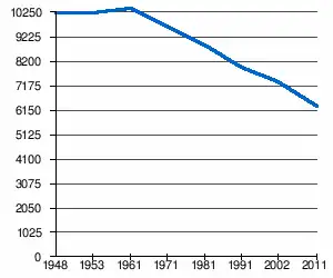 - 1 2 (sr + en) « Livre 20 : Vue d'ensemble comparative de la population en 1948, 1953, 1961, 1971, 1981, 1991, 2002 et 2011, données par localités) » [PDF], pages du recensement de 2011 en Serbie - Institut de statistique de la république de Serbie, (consulté le )