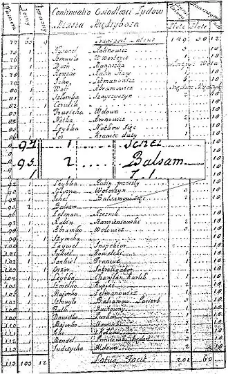 • plus récemment, le professeur Moshe Rosman du département d'histoire juive à l'Université Bar-Ilan découvre, dans les archives de la ville de Medjybij, la liste des contribuables. On y trouve le nom Baal Shem, docteur exonéré d'impôts, ainsi que ceux de nombreuses personnes citées dans le livre Les prodiges du Baal Shem Tov . À partir de 1760 le « Baal Shem Tov » ne figure plus dans les listes[10].