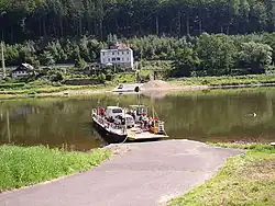 Le câble du bac de Dolní Žleb est sous l'eau.