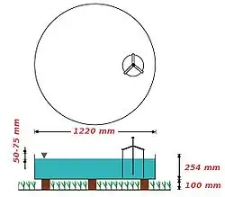 Ce bac fait 1,80 m de diamètre et 0,60 m de hauteur. Il est en fer galvanisé non peint et enterré de telle sorte que le bord dépasse le sol environnant de 5 cm. Le niveau d'eau dans la cuve est approximativement au niveau du sol[4]. Une variante de ce bac est appelé « bac Colorado ». Comme son nom l'indique, il s'agit d'un instrument utilisé dans l'ouest américain. Il est carré mesurant 1 m de côté et ayant une profondeur de 0,5 m[5].