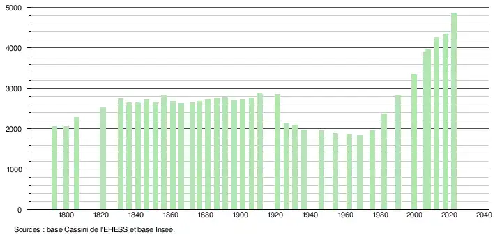 - ↑ Fiches Insee - Populations de référence de la commune pour les années 2006, 2007, 2008, 2009, 2010, 2011, 2012, 2013, 2014, 2015, 2016, 2017, 2018, 2019, 2020, 2021 et 2022.