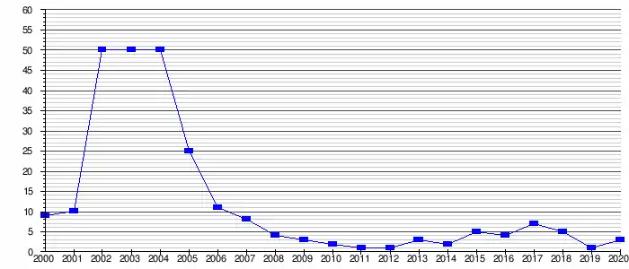 - la capacité d'autofinancement (CAF) pour une valeur totale de 56 000 €, soit 68 € par habitant, ratio inférieur de 59 % à la valeur moyenne pour les communes de la même strate (165 € par habitant). Sur la période 2016 - 2020, ce ratio fluctue et présente un minimum de 25 € par habitant en 2017 et un maximum de 102 € par habitant en 2019. La capacité de désendettement est d'environ 3 années en 2020. Sur une période de 21 années, ce ratio présente un minimum d'environ un an en 2011 et un maximum très élevé, de plus de 50 années en 2002.