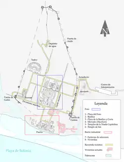 - ↑ (es) « Les fouilles de Baelo Claudia »(Archive.org • Wikiwix • Archive.is • Google • Que faire ?), sur juntadeandalucia.es (consulté en ).