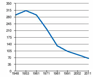 - 1 2 (sr + en) « Livre 20 : Vue d'ensemble comparative de la population en 1948, 1953, 1961, 1971, 1981, 1991, 2002 et 2011, données par localités) » [PDF], pages du recensement de 2011 en Serbie - Institut de statistique de la république de Serbie, (consulté le )
