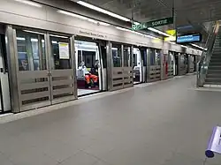 Elle est également équipée de quais latéraux à huit portes lui permettant de recevoir des rames de 26 m à deux voitures.