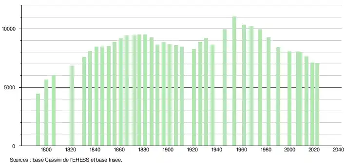 - ↑ Fiches Insee - Populations de référence de la commune pour les années 2006, 2007, 2008, 2009, 2010, 2011, 2012, 2013, 2014, 2015, 2016, 2017, 2018, 2019, 2020, 2021 et 2022.