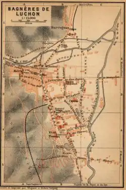- ↑ Charles Higounet, « Le développement urbain de Bagnères-de-Luchon », Revue géographique des Pyrénées et du Sud-Ouest. Sud-Ouest Européen, , p. 84 (lire en ligne)