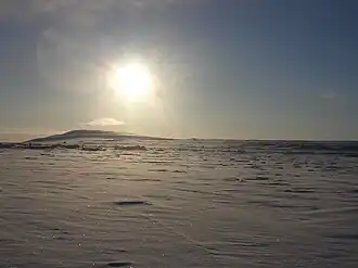 La végétation est peu abondante, on y retrouve la toundra et le sol est gelé en permanence (pergélisol). Il n'y a pas d'arbres, ce qui multiplie le facteur éolien. En été, le sol est recouvert d'une mince couche de lichens, de mousses, parfois même de plusieurs types de micro-fleurs qui survivent malgré le climat.