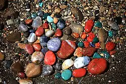 Au bord de la baie, la rivière nettoie des pierres précieuses provenant de laves basaltiques - opales, agates, jaspes et calcédoine[2].