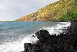 L'immense falaise surplombant la baie était autrefois le lieu de sépulture d'un royaume hawaïen[2]. Les ossements du défunt étaient probablement confiés à un enfant avant qu'il soit descendu, attaché à une corde, le long de la paroi afin qu'il les place dans l'un des nombreux trous volcaniques de la falaise. Une fois les ossements enterrés, la corde était coupée, précipitant l'enfant vers la mort et gardant ainsi le secret de leur cachette. C'était un honneur d'être choisi pour cette tâche.