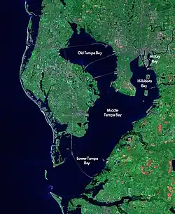 Elle est formée de plusieurs baies : Hillsborough Bay[2] (nord-est), McKay Bay (en) (extrême nord-est), Old Tampa Bay[3] (nord-ouest), Middle Tampa Bay[4] (centre) et Lower Tampa Bay[5] (sud).