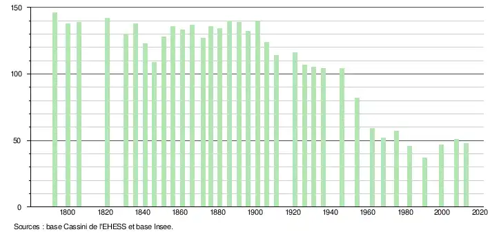 - ↑ Par convention dans Wikipédia, le principe a été retenu de n’afficher dans le tableau des recensements et le graphique, pour les populations légales postérieures à 1999, que les populations correspondant à une enquête exhaustive de recensement pour les communes de moins de 10 000 habitants, et que les populations des années 2006, 2011, 2016, etc. pour les communes de plus de 10 000 habitants, ainsi que la dernière population légale publiée par l’Insee pour l'ensemble des communes.