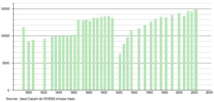 - ↑ Fiches Insee - Populations de référence de la commune pour les années 2006, 2007, 2008, 2009, 2010, 2011, 2012, 2013, 2014, 2015, 2016, 2017, 2018, 2019, 2020, 2021 et 2022.