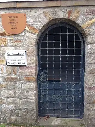 Le bain de Sirona est situé près d'Oppenheim, dans la banlieue de Nierstein, établi depuis peu et aujourd'hui assez fréquenté. Une pierre, trouvée au commencement du XIXe siècle et placée dans la voûte de la fontaine, prouve par son inscription[1] qu'il y avait dans cet endroit un établissement romain, et suivant l'opinion de M. Frédéric Lehné de Mayence, on a fait usage de ces eaux minérales sous l'empereur Domitien. Elles auraient été abandonnées vers l'an 267.