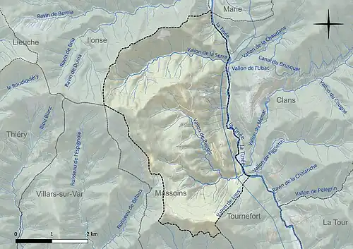 Les communes limitrophes sont Clans, Ilonse, Marie, Massoins et Tournefort.