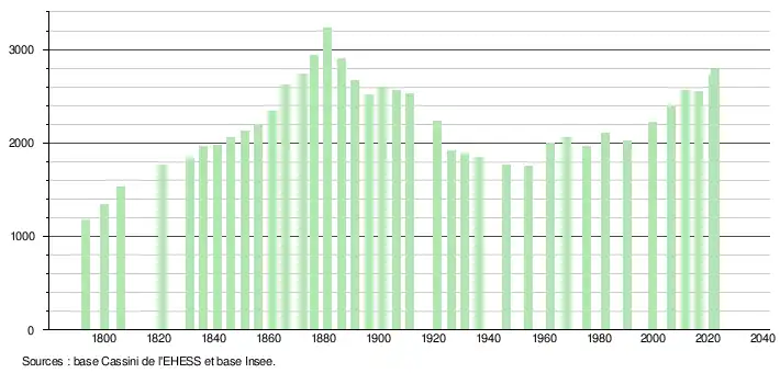 - ↑ Fiches Insee - Populations de référence de la commune pour les années 2006, 2007, 2008, 2009, 2010, 2011, 2012, 2013, 2014, 2015, 2016, 2017, 2018, 2019, 2020, 2021 et 2022.