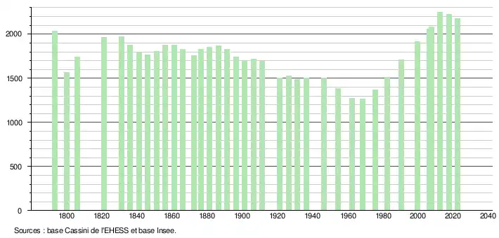 - ↑ Fiches Insee - Populations de référence de la commune pour les années 2006, 2007, 2008, 2009, 2010, 2011, 2012, 2013, 2014, 2015, 2016, 2017, 2018, 2019, 2020, 2021 et 2022.
