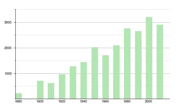 | 1960 | 1 705 | ▼ −15,68 % | |