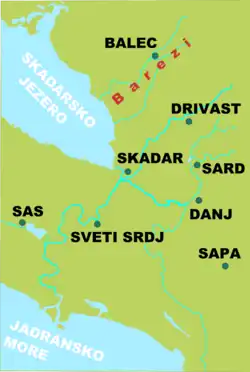 Baleč faisait partie du Dyrrhachium byzantin jusqu'à ce que le royaume de Duklja, sous Stefan Vojislav (1018–1043), le capture et en fasse la capitale de la župa de Barezi[7],[8]. Selon la Chronique du prêtre de Dioclée, après la mort de Stefan Vojislav en 1044, le contrôle de Baleč et de Barezi župa fut hérité par son fils Mihailo I Vojislavljević[7].