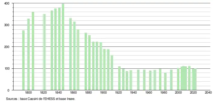 - ↑ Population municipale de référence en vigueur au 1er janvier 2025, millésimée 2022, définie dans les limites territoriales en vigueur au 1er janvier 2024, date de référence statistique : 1er janvier 2022.