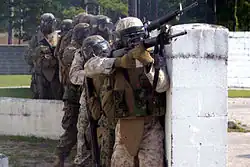 L'armée américaine utilise des cartouches de marquage non létales de 5,56 mm lors de l'entraînement. La balle a deux amorces. L'amorce avant propulse un projectile rempli de cire qui marque avec de la cire colorée à l'impact. La cire peut être retirée avec une simple lessive.