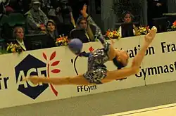 Le ballon permet à la gymnaste de mettre en avant sa grâce et sa douceur. L'élément corporel dominant doit être la souplesse.