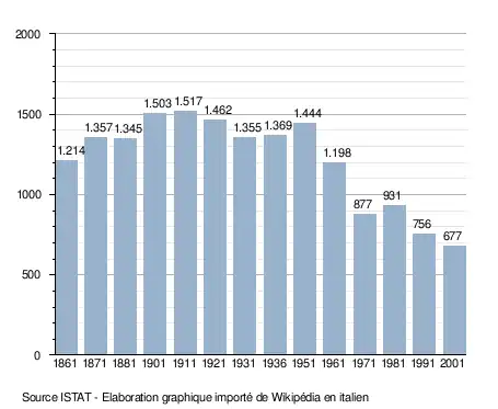 - ↑ (it) Popolazione residente e bilancio demografico sur le site de l'ISTAT.