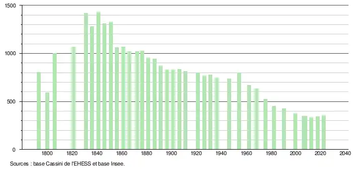 - ↑ Fiches Insee - Populations de référence de la commune pour les années 2006, 2007, 2008, 2009, 2010, 2011, 2012, 2013, 2014, 2015, 2016, 2017, 2018, 2019, 2020, 2021 et 2022.