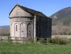 Bandes lombardes sur la façade de l'église Saint-André-de-Sorède (Pyrénées-Orientales).