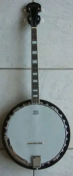 Le banjo est un instrument de musique à cordes pincées nord-américain[1]. Avec sa table d'harmonie à membrane, on le distingue facilement de la guitare. Cet instrument serait un dérivé du luth ouest-africain ekonting apporté par les esclaves noirs (ou plus vraisemblablement recréé par certains d'entre eux) et qui aurait suscité la création des premiers gourd-banjos (« banjo en gourde »)[2],[3],[4],[5],[6]. Le banjo représente désormais toute une famille d'instruments.