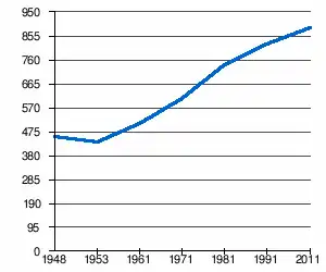 - 1 2 (sq) « Évolution de la population 1948-2011 », sur pop-stat.mashke.org (consulté le ).