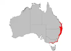 On le trouve le long de la quasi-totalité de la côte orientale de l'Australie, depuis Geelong (Victoria) jusqu'à Proserpine (Queensland), avec une population isolée sur l'île de Long Island (Tasmanie). Il s'étend donc jusqu'à 20 à 39° Sud en latitude. Il existe également un spécimen datant de 1876, supposé provenir de l'île de King Island (Tasmanie), mais l'espèce n'y est pas représentée aujourd'hui[5], et on suppose que ce spécimen a fait été recueilli dans l'Archipel Furneaux[20].