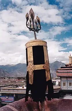 Chez les Tibétains, le même symbole se nomme gyaltsen (tibétain : རྒྱལ་མཚན, Wylie : rgyal-msthan, THL : gyaltsen, littéralement bannière) et est également connu sous le terme sanskrit de dhvaja (sanskrit : ध्वज). Il a été intégré aux religions locales: chamanisme bön et bouddhisme.