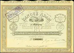 - ↑ ' Banque Adam ',sur le site scriponet.com, consulté le