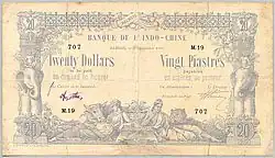 La banque de l’Indochine est une ancienne banque privée française, fondée en 1875 à Paris pour financer le développement colonial français en Asie. En tant que banque d'émission en Indochine jusqu'en 1952 - et dans les territoires français du Pacifique jusqu'en 1967 -, avec de nombreuses caractéristiques d'une banque centrale, elle a joué un rôle majeur dans l'histoire financière de l'Indochine française , de l'Inde française , de la Nouvelle-Calédonie , de la Polynésie française et de Djibouti , ainsi que dans les entreprises soutenues par la France en Chine et au Siam.