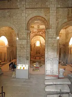 Au VIe siècle, son plan est modifié avec l'organisation de nouveaux espaces intérieurs, un mur sépare le baptistère en deux salles de dimensions égales et deux absidioles rectangulaires sont construites.