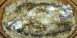 - Au four, vidé et non écaillé, avec juste un peu de thym, de l'huile d'olive et une rondelle de citron.