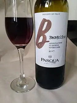 Une bouteille et un verre de Bardolino.