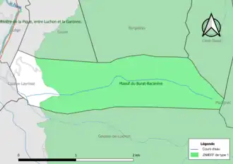 L’inventaire des zones naturelles d'intérêt écologique, faunistique et floristique (ZNIEFF) a pour objectif de réaliser une couverture des zones les plus intéressantes sur le plan écologique, essentiellement dans la perspective d’améliorer la connaissance du patrimoine naturel national et de fournir aux différents décideurs un outil d’aide à la prise en compte de l’environnement dans l’aménagement du territoire. Une ZNIEFF de type 1[Note 3] est recensée sur la commune[20] : le « massif du Burat-Bacanère » (8 318 ha), couvrant 15 communes du département[21] et une ZNIEFF de type 2[Note 4],[20] : la « Haute montagne en Haute-Garonne » (33 294 ha), couvrant 49 communes dont 41 dans la Haute-Garonne et huit dans les Hautes-Pyrénées[22].