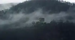 Paysage de la Baronnie des Angles depuis Bourréac, avec le chateau au centre de la photo.