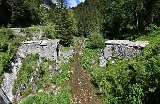 Les projets de conservation du barrage proposés en 1908, 1938 et 1944 n'aboutirent pas et l'ouvrage, reconnu entre-temps comme bien culturel d'importance régionale[6], fut peu à peu laissé à l'abandon et se détériora. Un violent orage, en avril 1945, provoqua l'effondrement de sa partie centrale[1].
