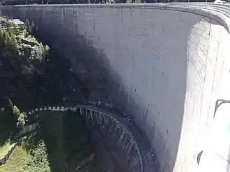 En 1959, lorsque le niveau maximum est atteint, à 1 770 m d'altitude, on détecte un mouvement de quelques centimètres sur l'épaule gauche du barrage qui génère des déformations et des dégâts dans le mur du barrage[2]. En conséquence, entre 1964 et 1969, l'altitude maximum est abaissée à 1 730 m, puis à 1 710 m.