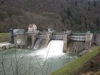 - Une centrale hydroélectrique qui utilise le débit réservé avec une hauteur de chute de 10,80 m, une puissance de 1,1 MW et un productible annuel de 2,8 GWh.