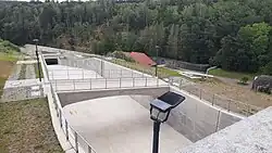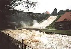 L'aménagement comporte un barrage auxiliaire consistant en une digue en remblais revêtus de blocs rocheux. Il y a en aval la centrale hydroélectrique ENSO Energie, dotée de deux turbines Francis, d'une puissance de 700 kW.