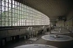 La centrale ferma après l’accident du 17 août 2009. Certaines des vieilles turbines furent ensuite redémarrées temporairement, mais furent toutes remplacées l’une après l’autre par des équipements plus performants.