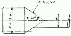 Dans les barres de torsion à section circulaire, le problème délicat est celui des attaches, au niveau desquelles il ne faut pas provoquer de concentration de contrainte. Le plus souvent, un cône de demi angle au sommet proche de 30°, raccordé à la barre par un large congé de raccordement (rayon r ~ 1,5.d), permet l'augmentation de diamètre nécessaire à la réalisation des cannelures qui seront engagées dans les parties femelles des pièces de liaison. La concentration de contrainte due au changement de rayon sera faible, en revanche les cannelures assurant la transmission de couple donneront un coefficient de concentration de contrainte voisin de 2.