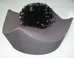 La barrette à trois cornes est portée avec la corne orpheline ou médiane au-dessus de l'oreille droite.