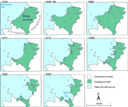 En 2008, la barrière de glace est proche de se détacher de la péninsule Antarctique, ce qui se révèle vrai dès l'année suivante, provoquant sa disparition[1].