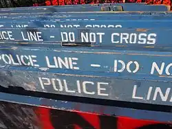 Les premiers périmètres de sécurité délimités par les forces de l'ordre pour canaliser les foules étaient originellement délimités par des barrières en bois lourdes et difficiles à installer. Les premiers modèles étaient fixé avec des clous, des vis et des boulons. L'utilisation ultérieure de barrières en bois plus légères a été problématique, car trop peu résistantes, elles cédaient facilement aux assauts de la foule[1]. Des barrières de sécurité mobiles en bois sont encore en usage dans les années 2016 à New York par exemple.